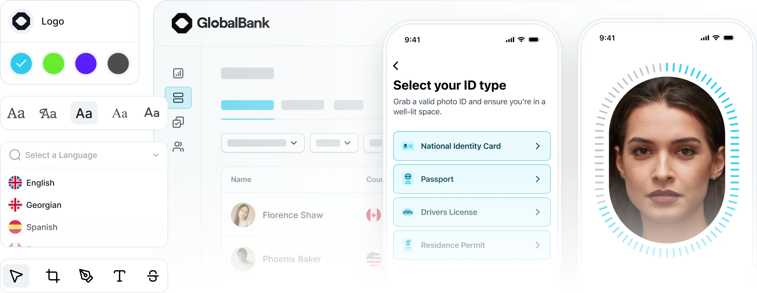 Identomat fits effortlessly into your product, adapting to your UI, workflows, and brand language. Configure every step of the verification journey or deploy a fully white-labeled experience that feels built in-house.