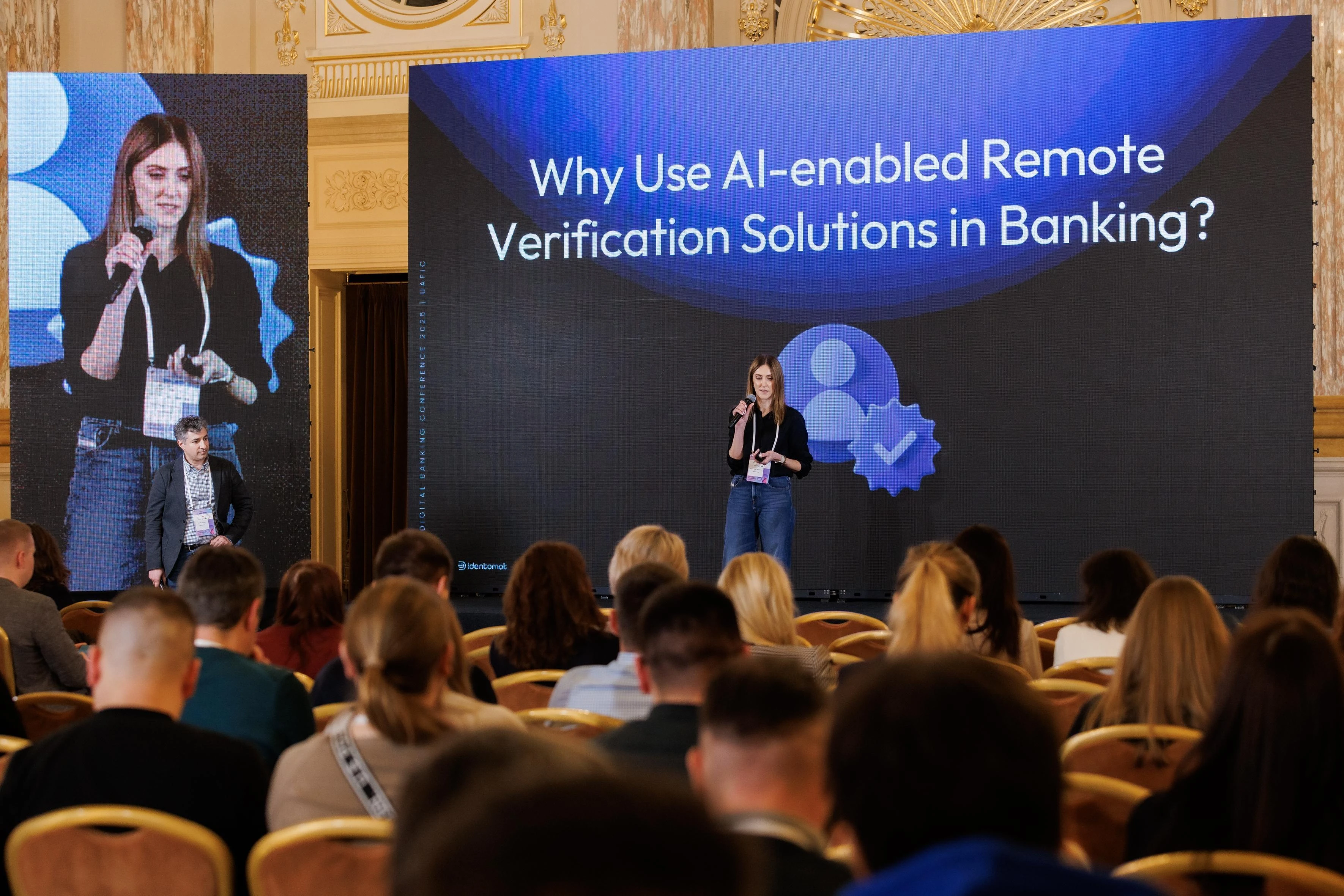At the Digital Banking Conference 2025, our COO, Zura, and our Country Manager, Ukraine, Liudmyla Paralova, took to the stage with the keynote “How Ukrainian Banks Can Lead with AI: From Frictionless Onboarding to Fraud Prevention.”
