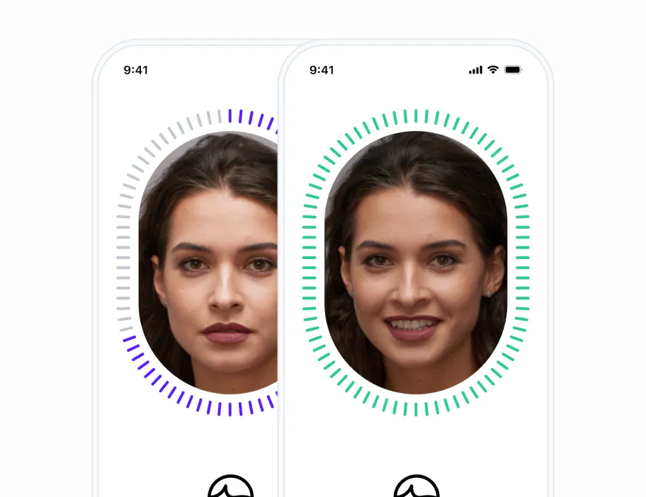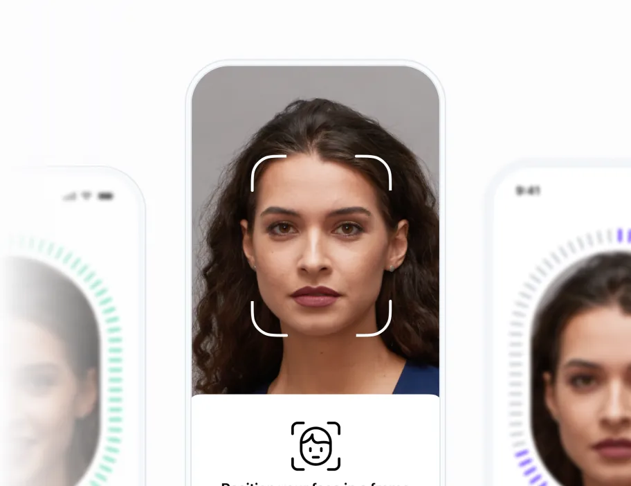 A short selfie video starts directly in your web or mobile flow. During capture, the user follows simple active liveness prompts (e.g., smile, pause, move closer/back) to confirm real presence.