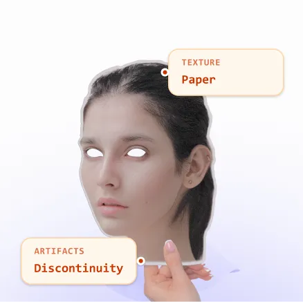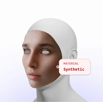 Analyzes skin texture and light scattering (subsurface scattering) to identify artificial materials.