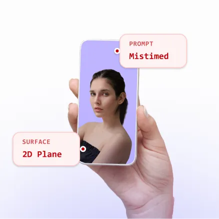 Users complete liveness with a quick capture no prompts needed. This is perfect for fast onboarding, providing strong baseline protection without extra steps. Our advanced algorithms analyze facial features and movements to ensure liveness, creating a seamless experience.
