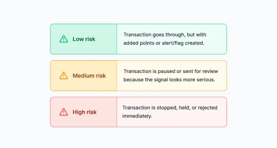 Score users during onboarding to decide whether they can proceed through standard review, require enhanced due diligence, or need manual investigation.