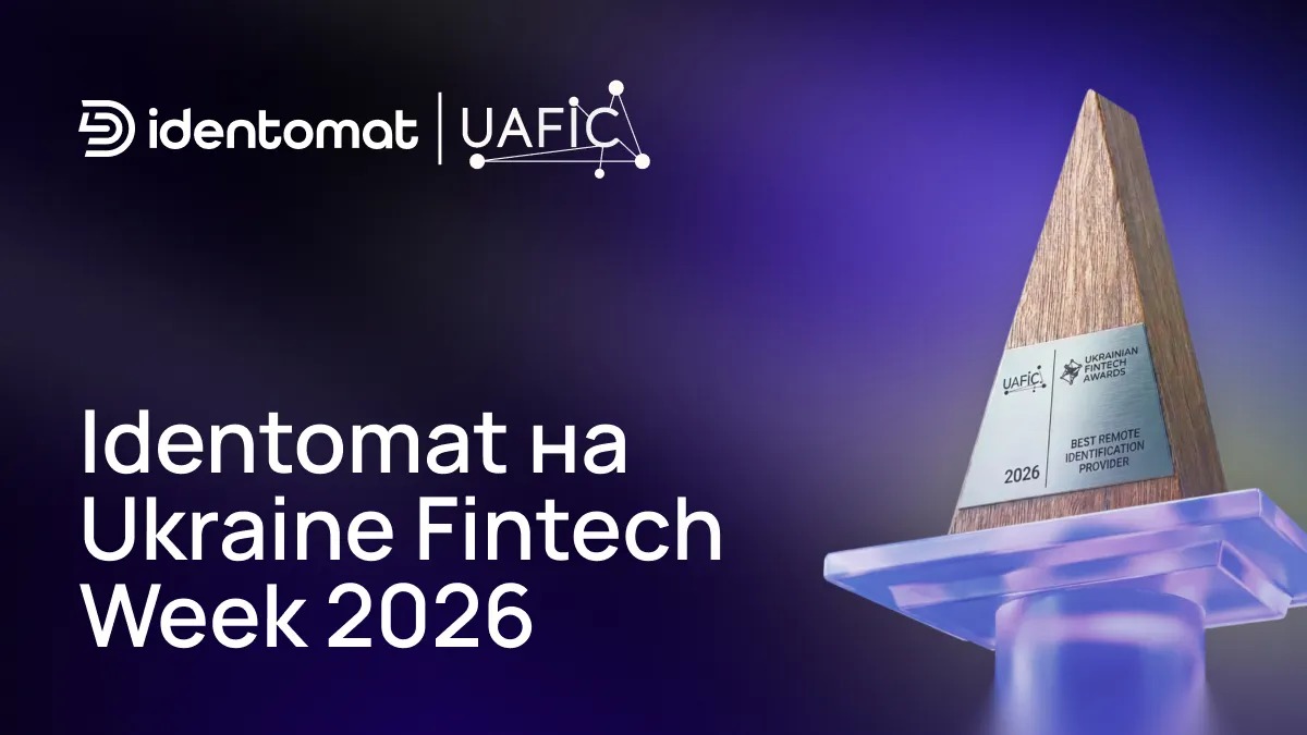 Під час Ukraine Fintech Week компанія Identomat також отримала нагороду Best Remote Identification Provider на Ukrainian Fintech Awards.